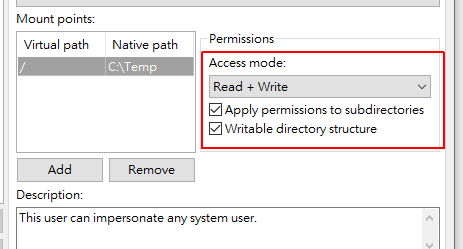 在Native path输入本机要显示的目录,如C:\Temp